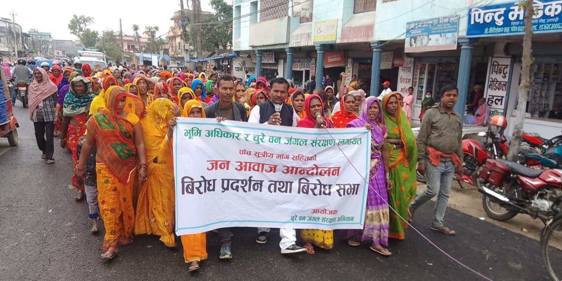 भूमि अधिकार तथा चुरे वनजंगल संरक्षण लगायतको ५ सूत्रिय मागसहित चुरे तथा वनजंगल संरक्षण अभियानीहरूले सोमबार सिरहाको सदरमुकाम सिरहामा विरोध प्रदर्शन गरेका हुन् ।