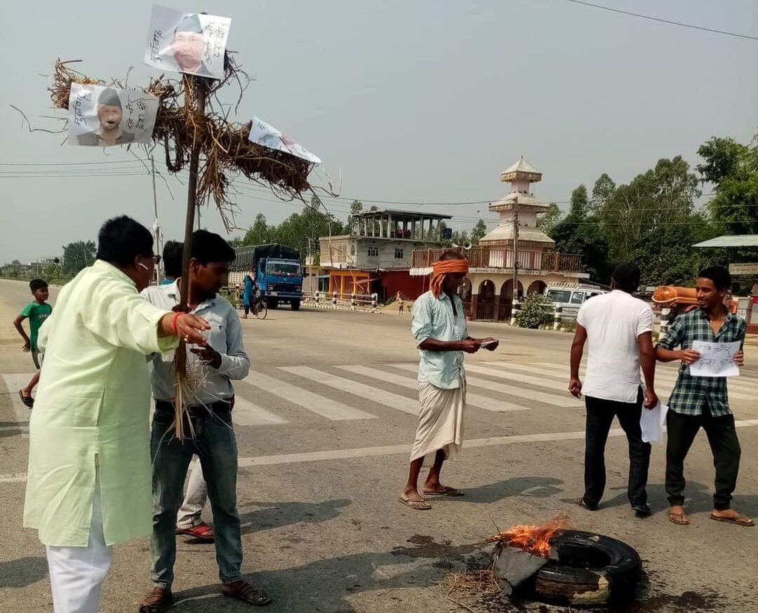 धनुषामा ओली, लिङ्देन र लामिछानेको पुत्ला दहन