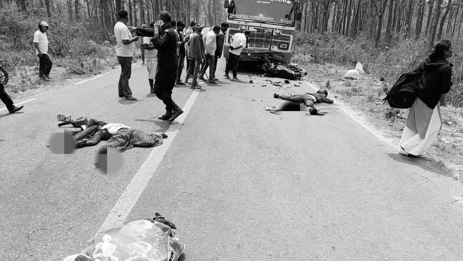 महोत्तरीमा बसको ठक्करबाट मोटरसाइकलमा सवार एकै परिवारका तीनजनाको मृत्यु