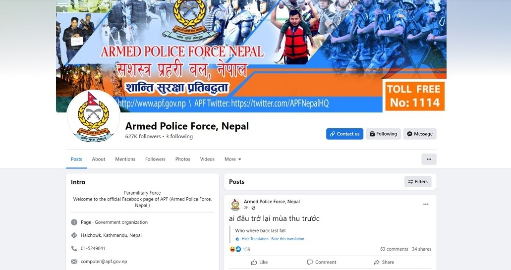 सशस्त्र प्रहरी बलको फेसबुक पेज ह्याक
